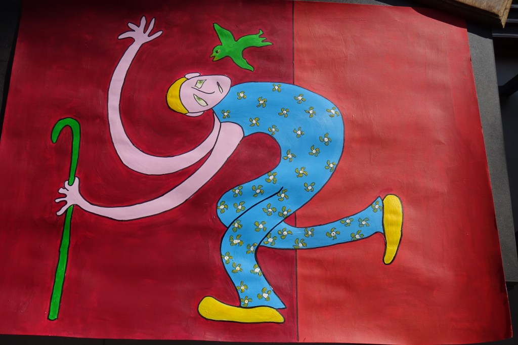 Sinon, vous êtes libres d’interpréter cette peinture à votre guise – l’artiste peintre espère quant à elle que ce personnage comprend l’anglais -ce qui est loin d’être gagné (pense-t-elle 😉 mais ceci est peut-être une déformation professionnelle …)