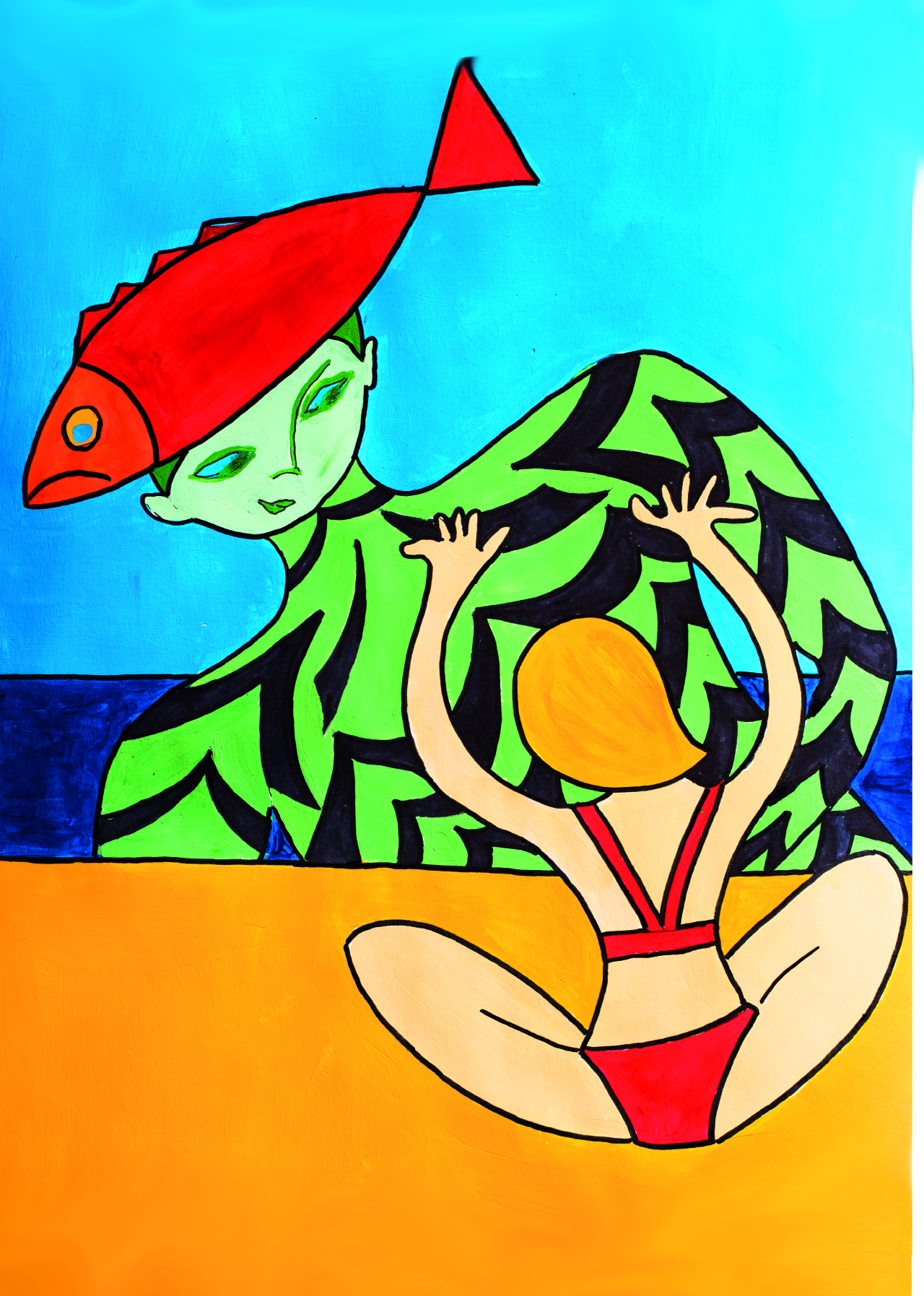 Assis sous le parasol