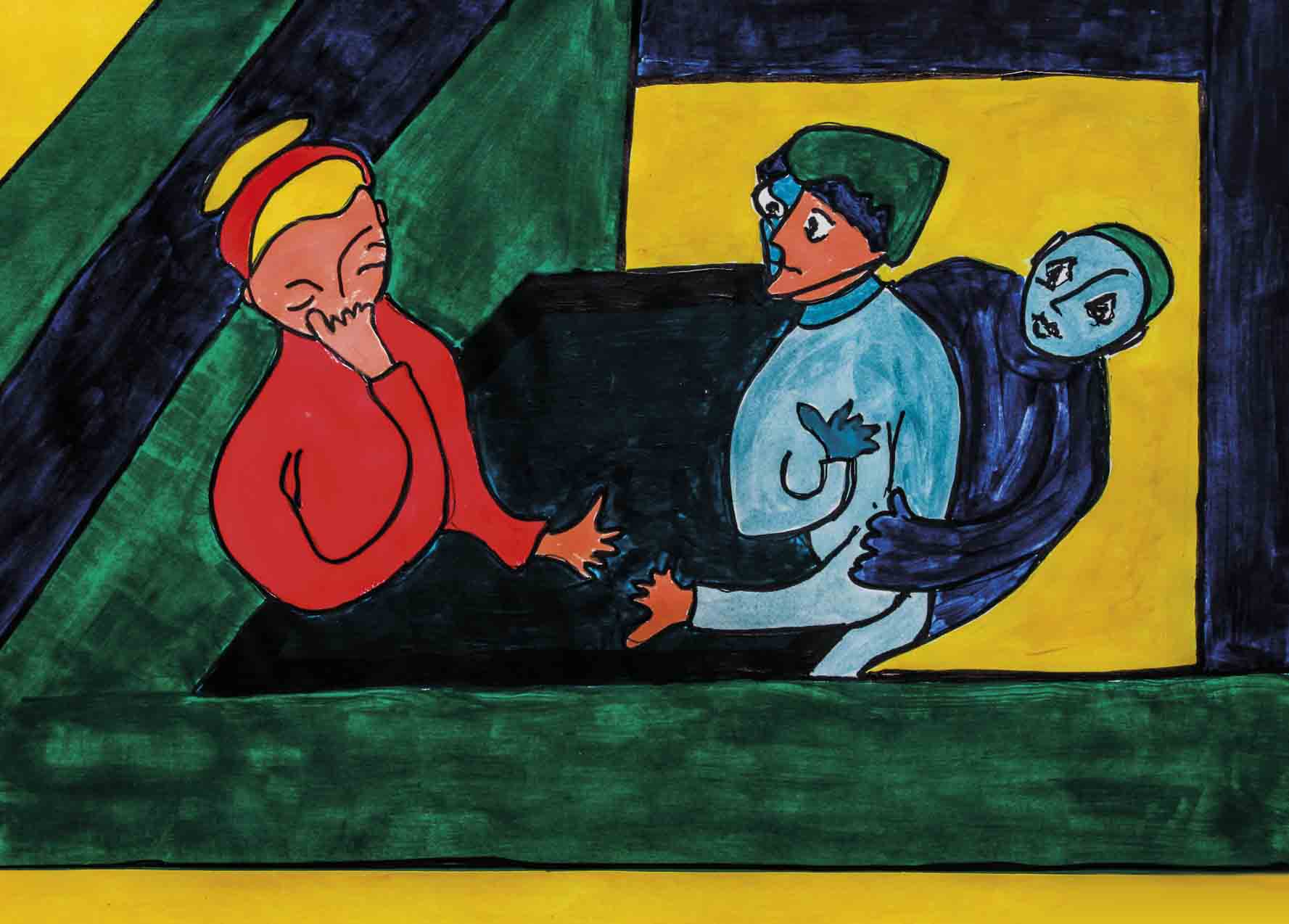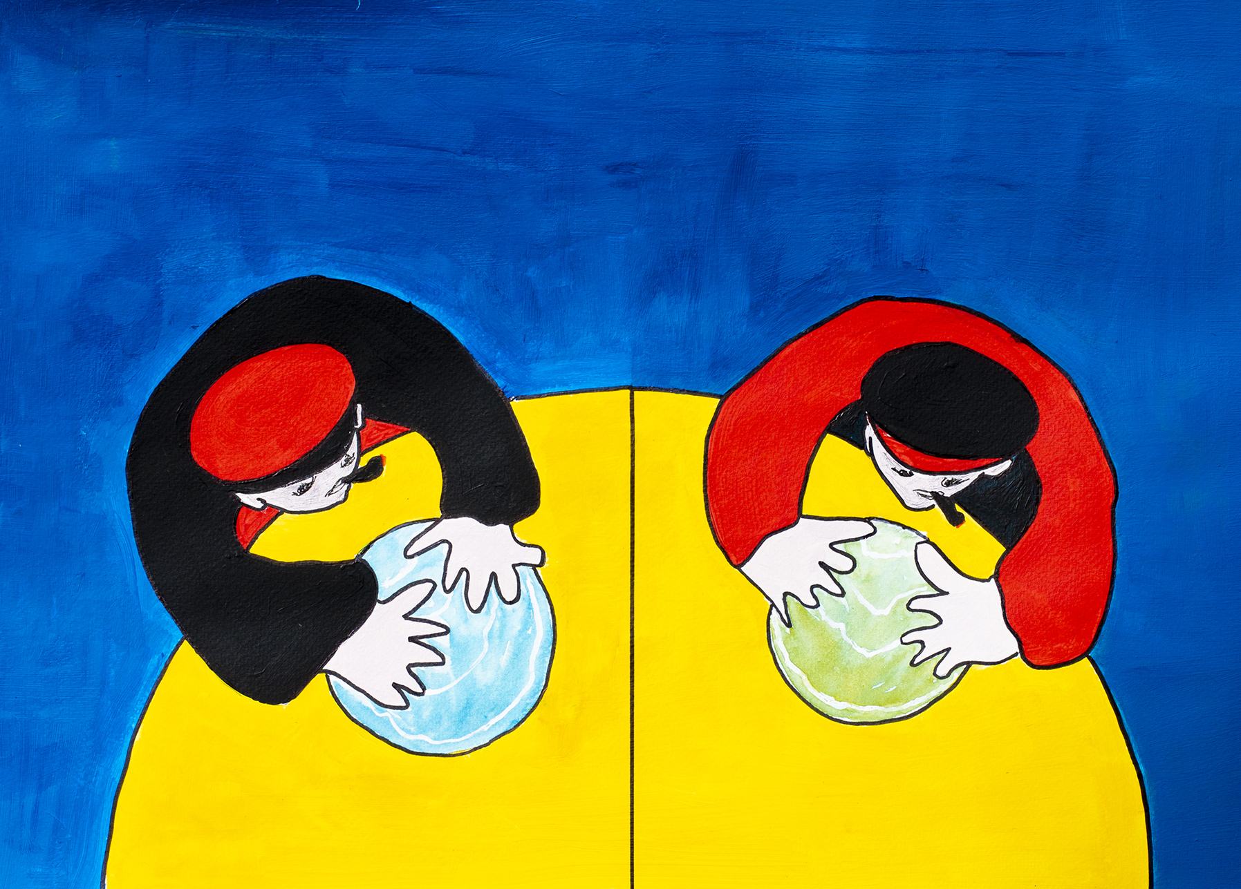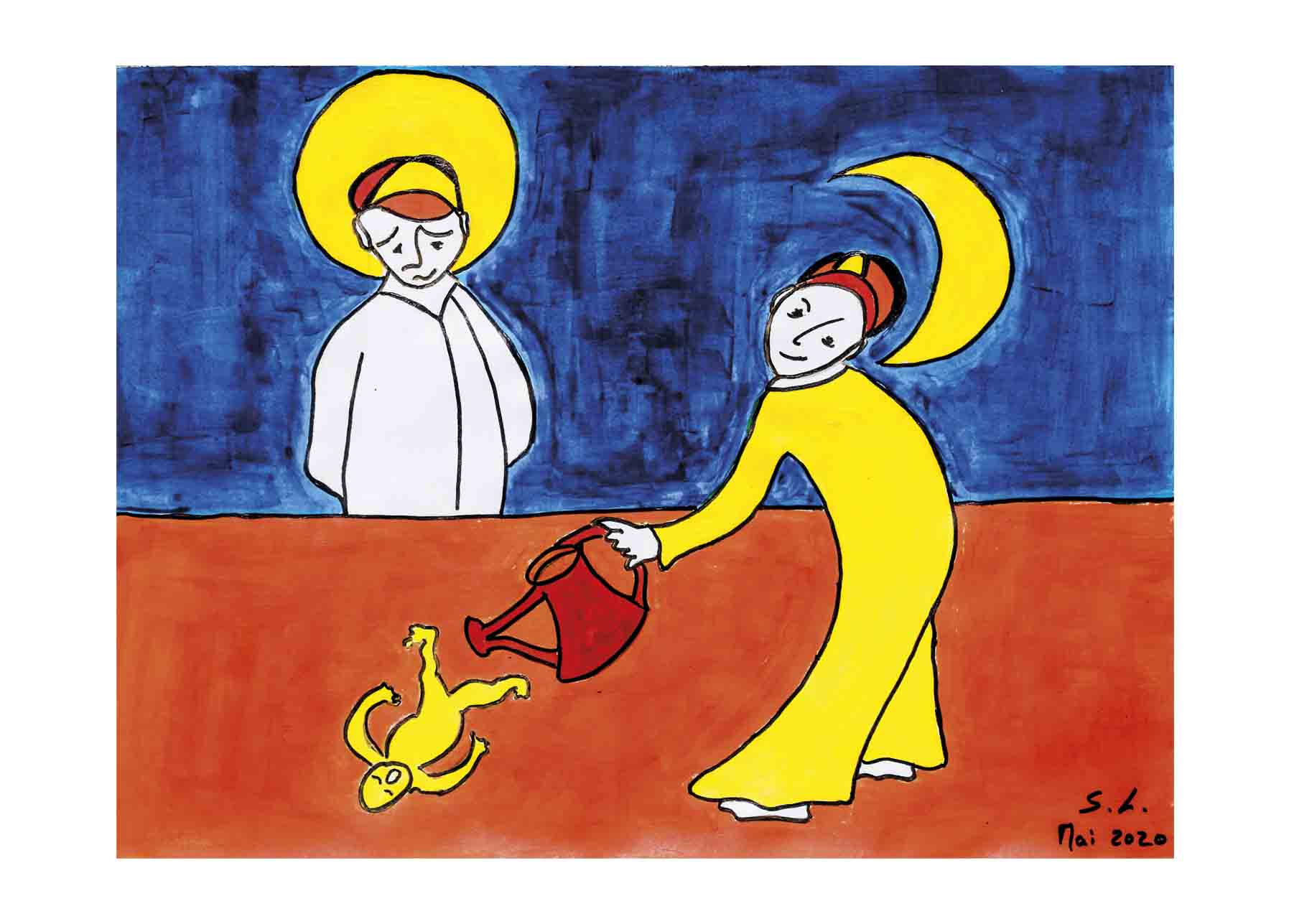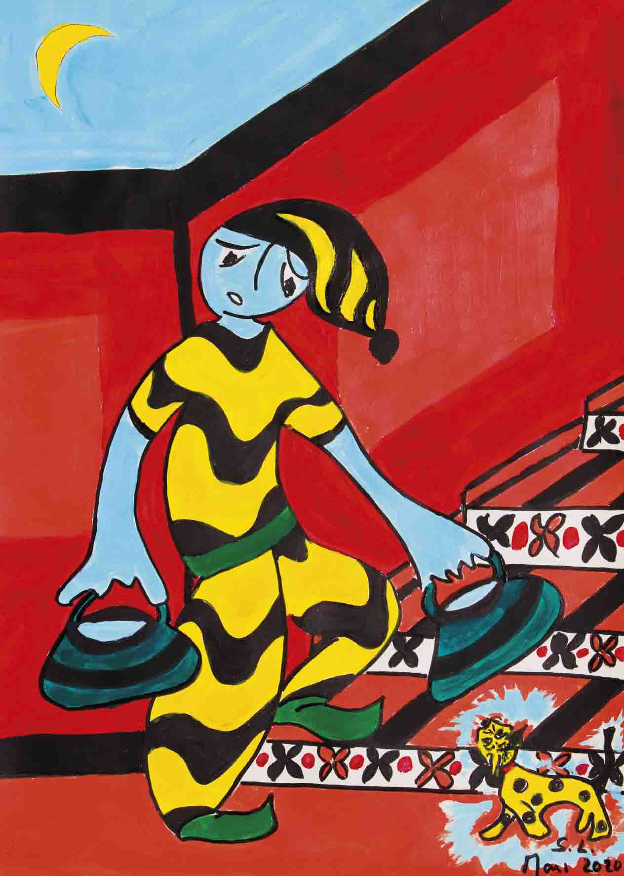 Comme vous avez peut-être pu le constater en suivant mon blog, je me suis mise à la peinture. On m’a demandé de rassembler ces images pour plus de visibilité / lisibilité. Les originaux sont peints à l’acrylique. À mes débuts, ils étaient pour l’essentiel en format A3 . Maintenant, ils sont plus grands : en format ‘raisin’ , c’est à dire en 50 * 65 cm . Une fois sous verre avec passe-partout, cela fait des objets de 60* 80cm – ce qui augmente leur présence. Je déconseille le mini-écran du smartphone qui ne leur rend pas justice.